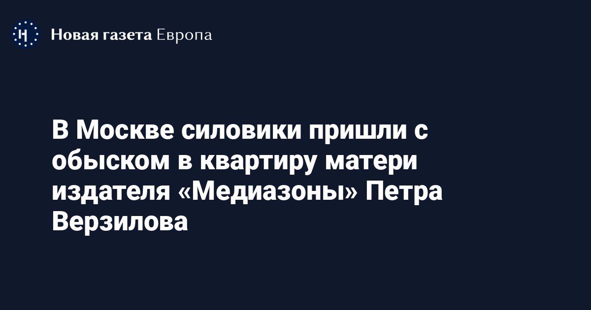 В Москве силовики пришли с обыском в квартиру матери издателя «Медиазоны» Петра Верзилова