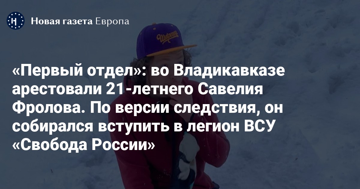Ленинский районный суд города Владикавказа арестовал 21-летнего россиянина Савелия Фролова по обвинению в приготовлении к переходу на сторону противника (ч. 1 ст. 30, ст. 275 УК). Об этом сообщает правозащитный проект «Первый отдел».