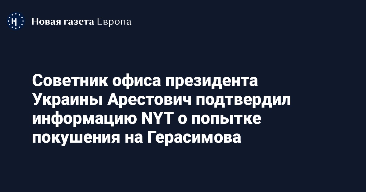 Советник офиса президента Украины Алексей Арестович подтвердил информацию The New York Times о попытке покушения на начальника Генштаба ВС РФ генерала Валерия Герасимова.