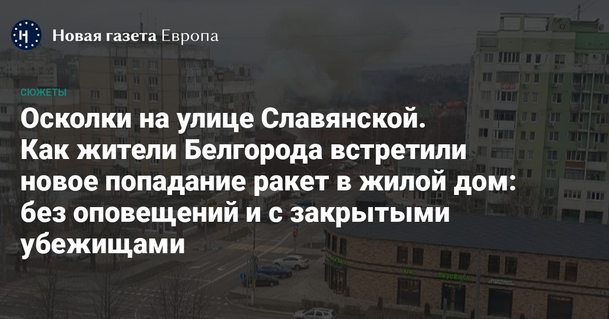 18 декабря после работы ПВО в районе улицы Славянская упал осколок ракеты. В квартирах выбило стекла, 8 человек были ранены. Убежища, которыми для белгородцев служат подвалы, были закрыты, а оповещение пришло только спустя полтора часа после обстрела.