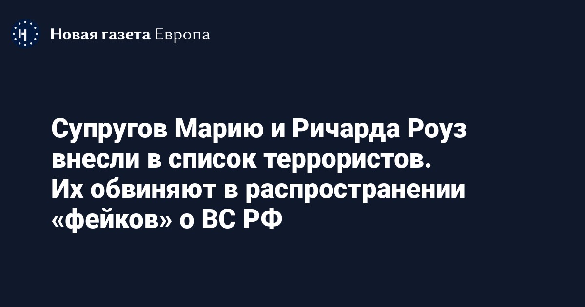 Супругов Марию и Ричарда Роуз внесли в список террористов. Их обвиняют в распространении «фейков» о ВС РФ