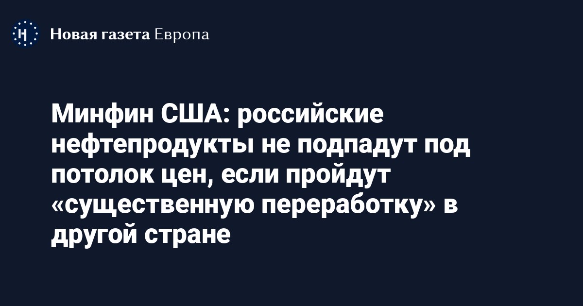 Управление по контролю за иностранными активами (OFAC) Минфина США сообщило, что российские нефтепродукты не будут подпадать под потолок цен, если пройдут «существенную переработку» на территории другой страны. Об этом сообщается в документе, опубликованном на сайте ведомства.