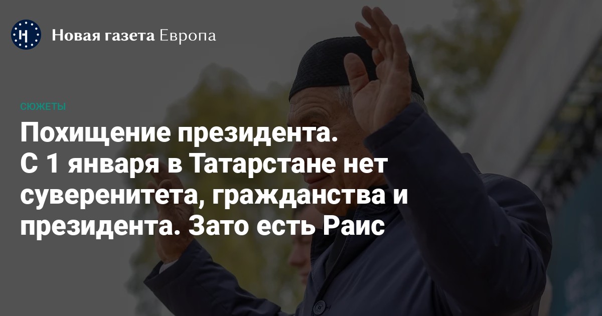 22 декабря на заседании Госсовета Республики Татарстан были внесены поправки в Конституцию, которые вступят в силу уже с 1 января 2023 года. В новом документе нет понятия татарстанского гражданства и суверенитета, убрали пункт об отвержении войны и пропаганды. И главное — с 1 января в Татарстане нет президента. Но Минниханов будет так называться до конца своего срока.