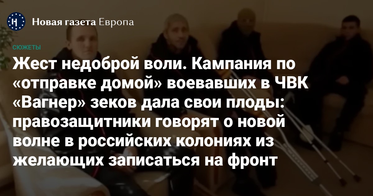 40 тысяч заключенных, по мнению Ольги Романовой, было завербовано в «группу Вагнера» еще в прошлом году. В декабре темпы набора снизились в разы. Заключенные, столкнувшиеся с многочисленными случаями внесудебных расправ, принятых в ЧВК в качестве наказания, перестали записываться в организацию даже под давлением администрации колоний. «Только по нашим данным на конец осени было зафиксировано более 50 бессудных убийств заключенных из ЧВК, — говорит »Новой-Европа« Ольга Романова. — Но развернутая в последние дни активная пиар-кампания по освобождению заключенных дала свои плоды: на глазах происходит всплеск энтузиазма, люди записываются наперегонки».