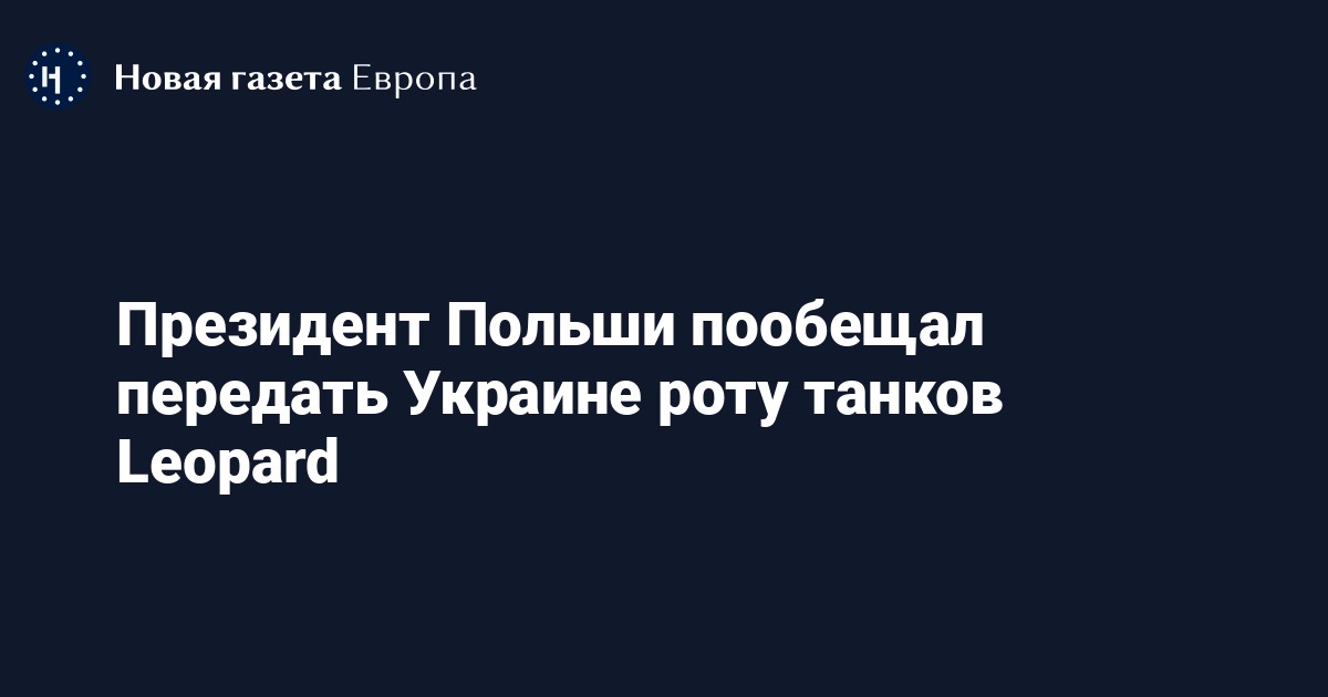 Президент Польши Анджей Дуда пообещал передать Украине роту танков Leopard, сообщает канцелярия польского лидера.