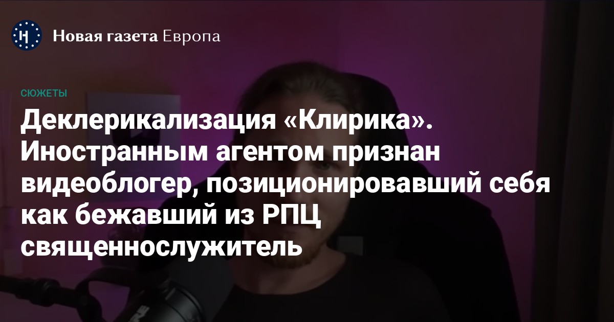 На почетное звание «первого священнослужителя-иноагента» в РФ с 13 января претендует Сергей Владимирович Кирсанов — известный православной и отчасти светской аудитории видеоблогер под ником «Клирик». Его канал на YouTube к моменту написания этой статьи имеет более 208 тысяч подписчиков. Для сравнения — у официального канала РПЦ только 71 тысяча, а у финансируемого РФ телеканала «Спас» — 109 тысяч. «Пастырский» контент на русском языке не особо популярен в YouTube и показатели канала «Клирик» могли бы считаться более чем успешными в своей сфере.