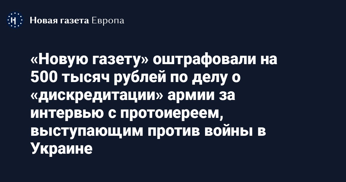 Таганский районный суд Москвы оштрафовал «Новую газету» на 500 тысяч рублей по административному делу о «дискредитации» российской армии (ч. 1, ст. 20.3.3 КоАП), сообщает «Медиазона» со ссылкой на пресс-службу суда.
