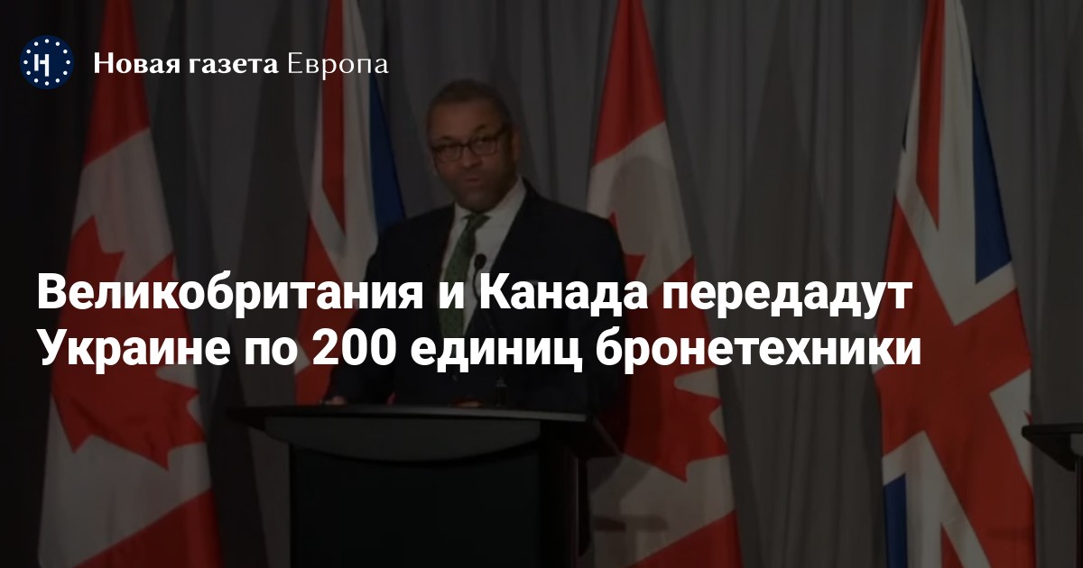 Великобритания и Канада передадут в новом пакете помощи Украине по 200 единиц бронетехники от каждой страны. Об этом сообщили глава Минобороны Канады Анита Ананд и глава МИД Великобритании Джеймс Клеверли.