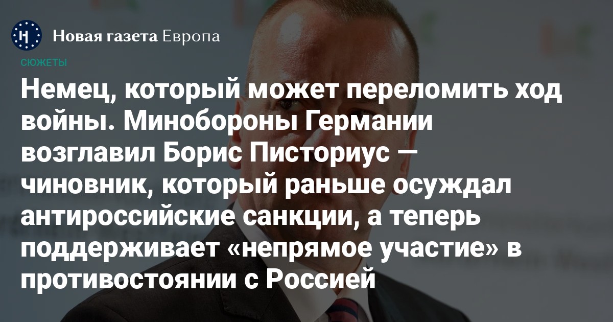 Все эти инициативы происходили на фоне сомнительных связей будущего главы Минобороны. Писториус начал карьеру в Социал-демократической партии, когда его родную Нижнюю Саксонию возглавлял Герхард Шрёдер (тоже соцдем) — пожалуй, самый большой друг Путина во всей современной Германии. Соответствуя партийной дисциплине, Писториус критиковал санкционный режим ЕС против России в 2014 году, а также входил в группу Бундесрата, обеспечивающую политическое сотрудничество между ФРГ и РФ. Более того — с 2016 года Писториус жил в гражданском браке с бывшей женой Герхарда Шрёдера Дорис. «Зная симпатии Дорис к России, можно полагать, что и Писториус в отличие от многих немецких политиков не испытывает ненависти к России», — сказал таблоиду Bild Александр Рар, лоббист «Газпрома» в Германии.