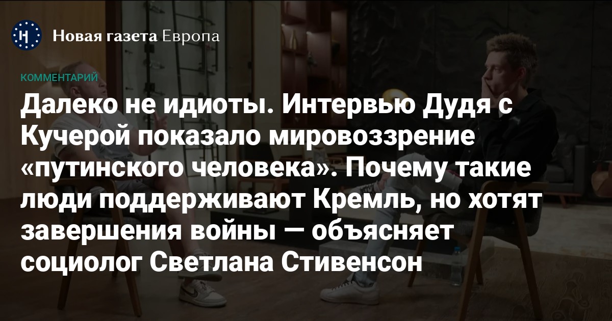 Интервью Дудя с Кучерой показало мировоззрение «путинского человека». Почему такие люди поддерживают Кремль, но хотят завершения войны — объясняет социолог Светлана Стивенсон