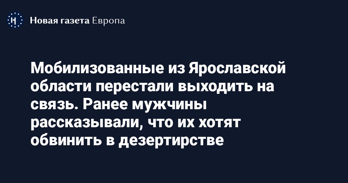 Мобилизованные из Ярославской области, ранее записавшие видео с жалобами на командование, которое отдало приказ об отступлении, а потом пригрозило обвинить в дезертирстве, перестали выходить на связь. Об этом сообщает телеграм-канал «Место силы Ярославль» со ссылкой на родственников мобилизованных.