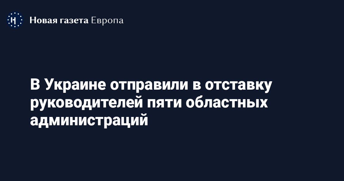 Кабмин Украины отправил в отставку пятерых глав областных администраций — Валентина Резниченко (Днепропетровская область), Александра Старуха (Запорожская), Алексея Кулебу (Киевская), Дмитрия Живицкого (Сумская) и Ярослава Янушевича (Херсонская). Об этом сообщил министр Кабинета министров Олег Немчинов.