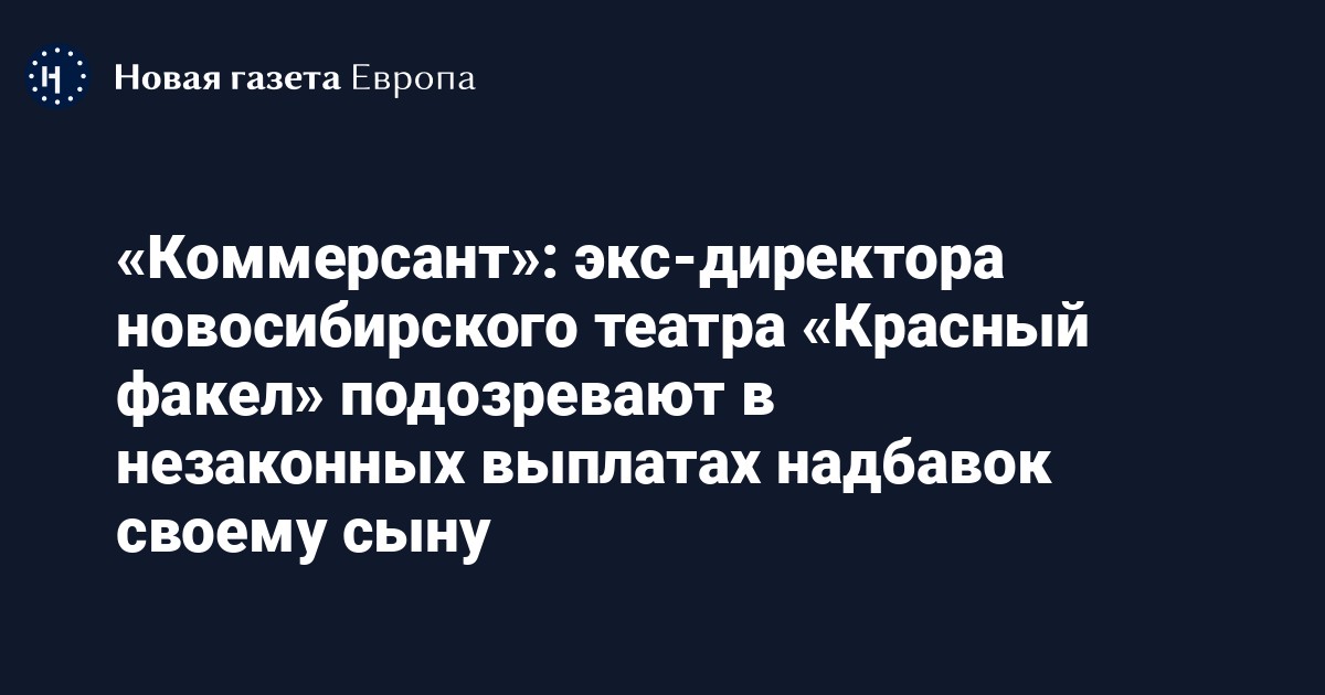 Бывший директор новосибирского театра «Красный факел» Александр Кулябин подозревается в незаконных выплатах надбавок к зарплате своему сыну, бывшему главному режиссеру театра Тимофею Кулябину, сообщает «Коммерсант» со ссылкой на источники, знакомые с материалами дела.