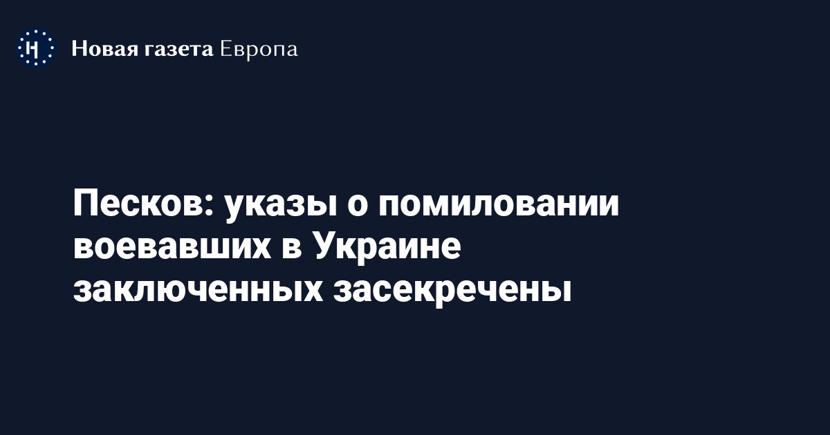 Президентские указы о помиловании заключенных, завербованных для отправки на войну в Украине, засекречены. Об этом сказал пресс-секретарь президента Дмитрий Песков, отвечая на вопрос Русской службы «Би-би-си».