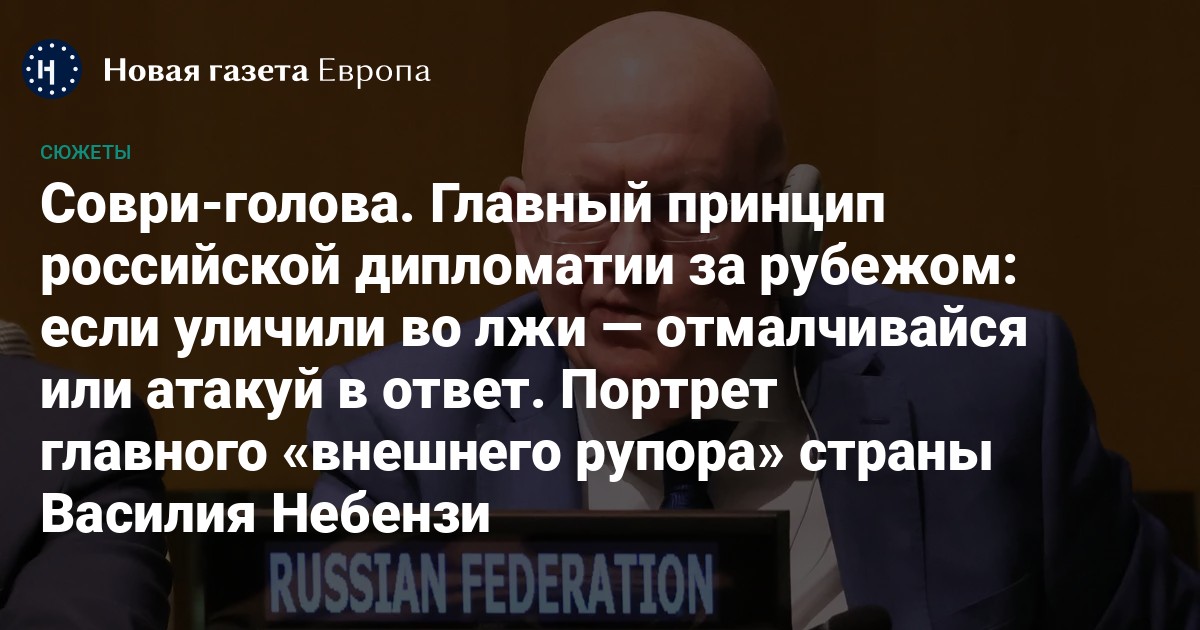 «Повреждения жилых домов и жертвы среди мирного населения Украины происходят по вине украинской ПВО» — эту фразу, как мантру, уже целый год произносит постоянный представитель России при ООН Василий Небензя. Произносит на официальном уровне ежемесячно, а то и чаще — словом, каждый раз, когда жилые украинские районы после ракетных ударов оказываются в руинах, а под завалами гибнут мирные жители… При этом Небензя не приводит прямых доказательств — видео, фото или документальных, что это именно украинские ПВО, а не российские ракеты стали виновниками гибели людей. Просто предлагает поверить на слово. И в этом его, Небензи, постоянство. Его трибуна — заседания Совбеза ООН. Кабинет — в Нью-Йорке на Манхэттене. Сегодня он — третья голова российской дипломатии после Сергея Лаврова и Марии Захаровой. Повторяет их стиль, аргументацию и риторику, как кажется, мало имеющую отношения к дипломатии. Такому не учат в МГИМО, скорее в других кабинетах… И, как и Захарова с Лавровым, Небензя никогда не поправляется, если его заявления опровергаются фактами. А они опровергаются, и как никогда часто именно с начала войны.