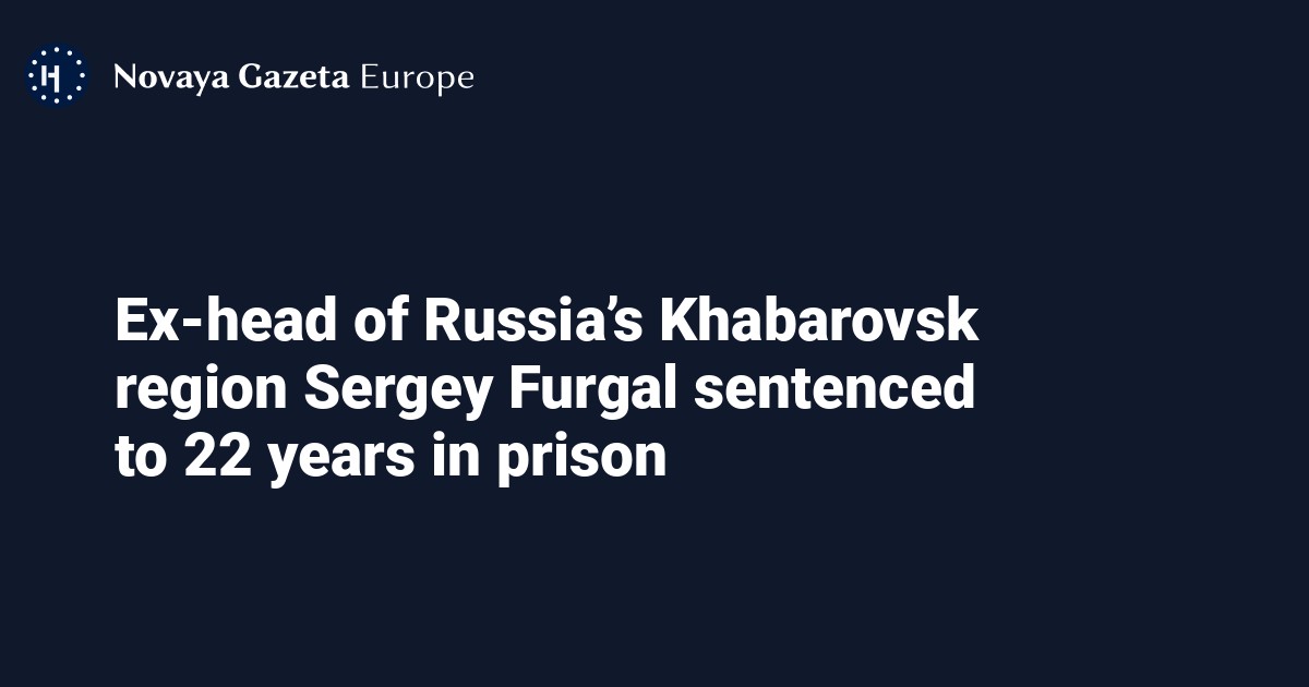 Former Governor of Russia’s Khabarovsk region (Russia’s Far East) Sergey Furgal has been sentenced to 22 years behind bars in a high-security prison for organising assassinations of business competitors in 2004-2005, a Novaya Gazeta Europe correspondent reports from the courtroom.