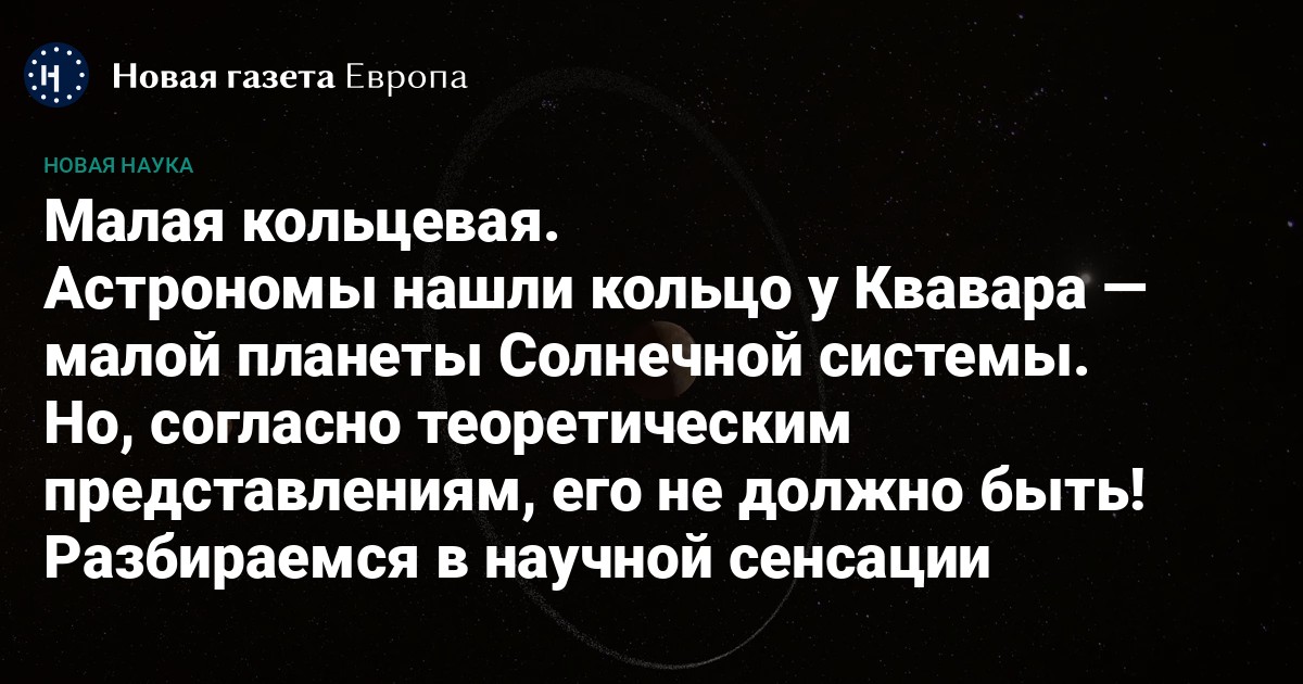 В заголовки мировых новостных агентств попала новость, представляющая, казалось бы, узкопрофессиональный интерес: у карликовой планеты Квавар (Quaoar) Cолнечной системы обнаружено кольцо — как у Сатурна. Почему это всех так взбудоражило?