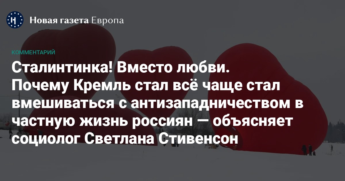 Почему Кремль стал всё чаще стал вмешиваться с антизападничеством в частную жизнь россиян — объясняет социолог Светлана Стивенсон