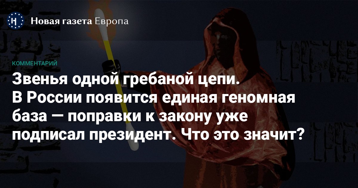 В начале февраля года президент России Владимир Путин подписал поправки к закону «О государственной геномной регистрации в Российской Федерации». Теперь, согласно изменениям, геномную информацию будут собирать у всех без исключения осужденных и подозреваемых, а также у граждан при административном аресте. Например, у задержанных на митингах.