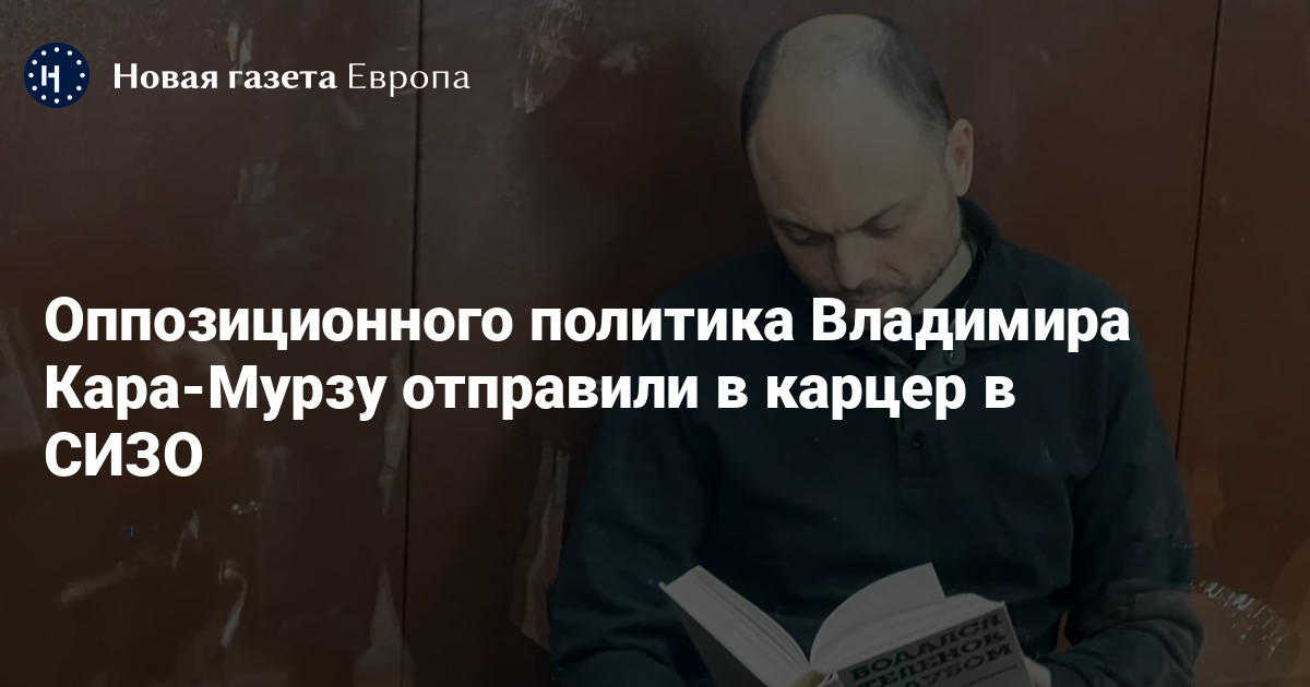 Оппозиционный политик, журналист и правозащитник Владимир Кара-Мурза, который с весны 2022 года находится в московском СИЗО №5 («Водник»), сегодня был отправлен в карцер на четверо суток. Об этом «Новой газете Европа» сообщил его адвокат Вадим Прохоров.