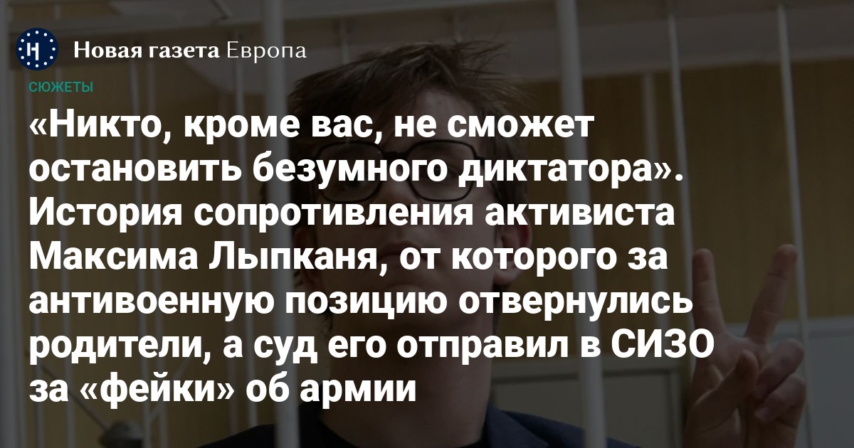 История сопротивления активиста Максима Лыпканя, от которого за антивоенную позицию отвернулись родители, а суд его отправил в СИЗО за «фейки» об армии