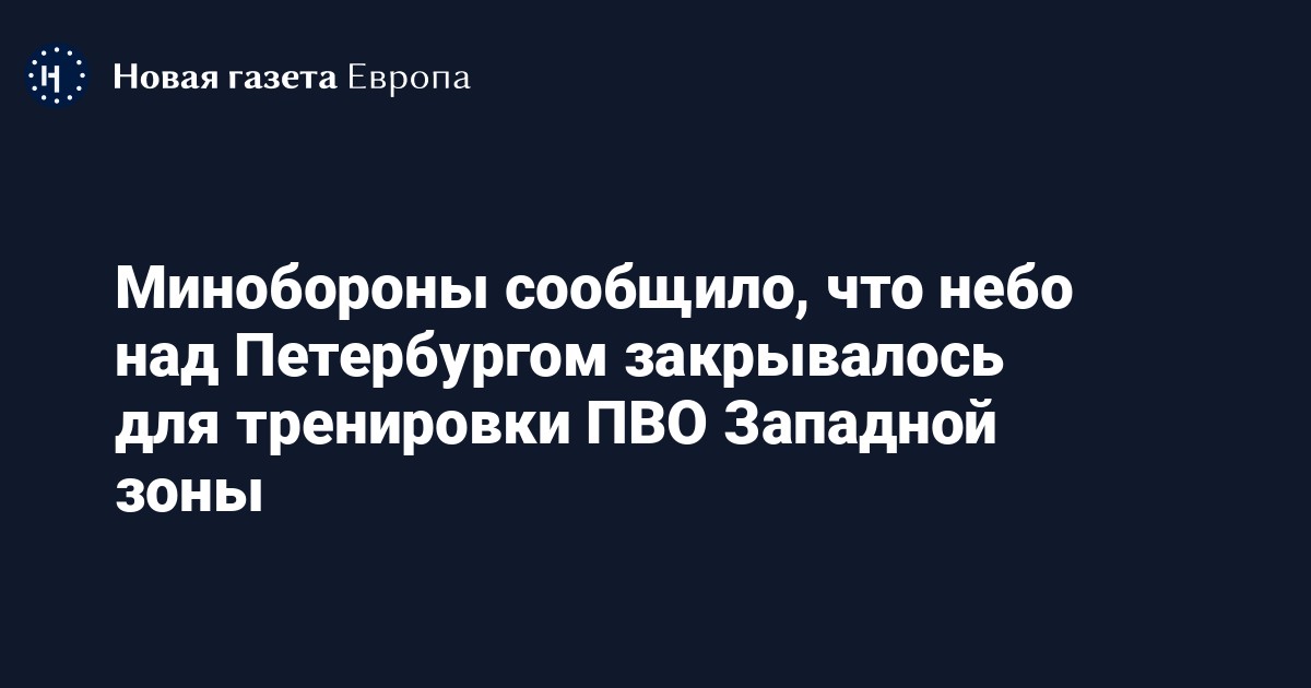 Минобороны сообщило, что небо над Петербургом закрывалось для тренировки ПВО Западной зоны, передает РИА Новости.