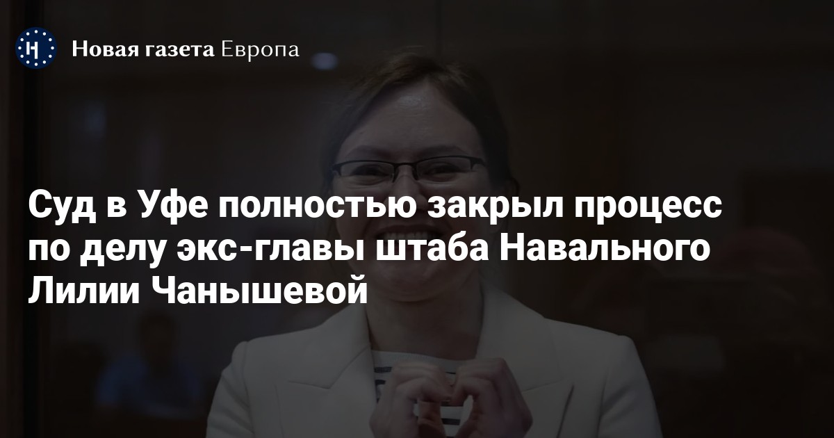 Кировский районный суд Уфы полностью закрыл процесс по делу бывшего координатора штаба Навального Лилии Чанышевой, обвиняемой по трем уголовным статьям об экстремизме. Об этом сообщают юрист Иван Жданов и «Сирена».