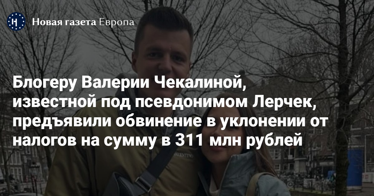 Блогеру Валерии Чекалиной под псевдонимом Лерчек предъявили обвинение в уклонении от налогов на сумму в 311 млн рублей. Об этом прокуратура Москвы сообщила в телеграм-канале.
