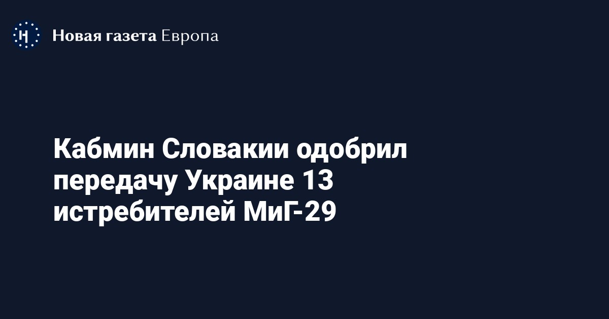 Правительство Словакии одобрило передачу Украине 13 истребителей МиГ-29, заявил премьер-министр страны Эдуард Хегер.