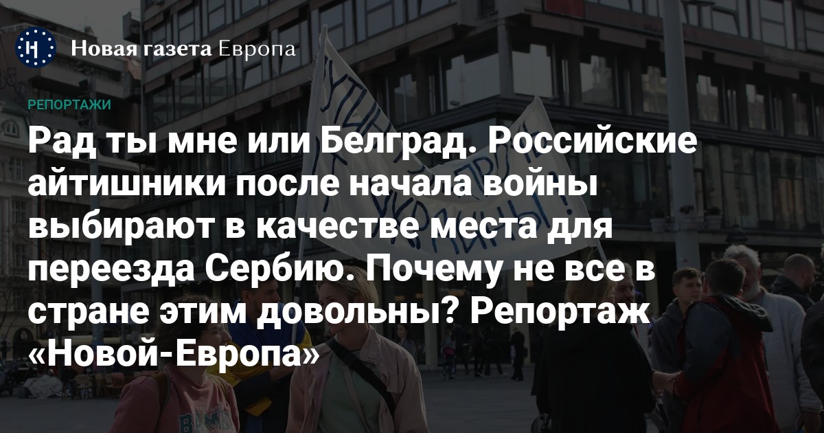 The Wall Street Journal пишет, что с февраля по октябрь 2022 года в Сербию прибыли от 50 до 100 тысяч российских айтишников, предпринимателей, ученых и деятелей искусства, — страна стала самым популярным направлением для сотрудников IT-компаний и высококвалифицированных специалистов.