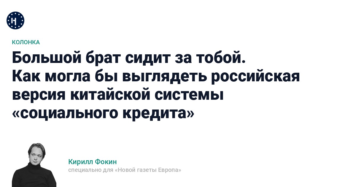 Как могла бы выглядеть российская версия китайской системы «социального кредита»