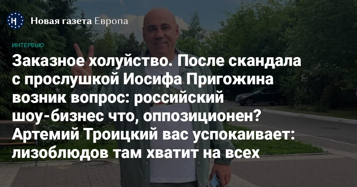 Одним из основных выводов, который был сделан комментаторами скандала вокруг телефонного разговора музыкального продюсера Иосифа Пригожина и бизнесмена Фархада Ахмедова (или людей с очень похожими голосами), является суждение о том, что на самом деле представители российской музыкальной индустрии вовсе не такие лояльные, как это всегда подавалось той же пропагандой. Музыкальный критик Артемий Троицкий, с которым поговорила Ирина Купряхина, считает, что это верно лишь отчасти: в шоу-бизнесе очень много «молчунов», которые на самом деле думают о происходящем все то же самое, что нормальные люди, — но стараются не афишировать свою позицию. Однако если их очень «попросят», о своих взглядах они тут же забудут. Жить-то хочется.