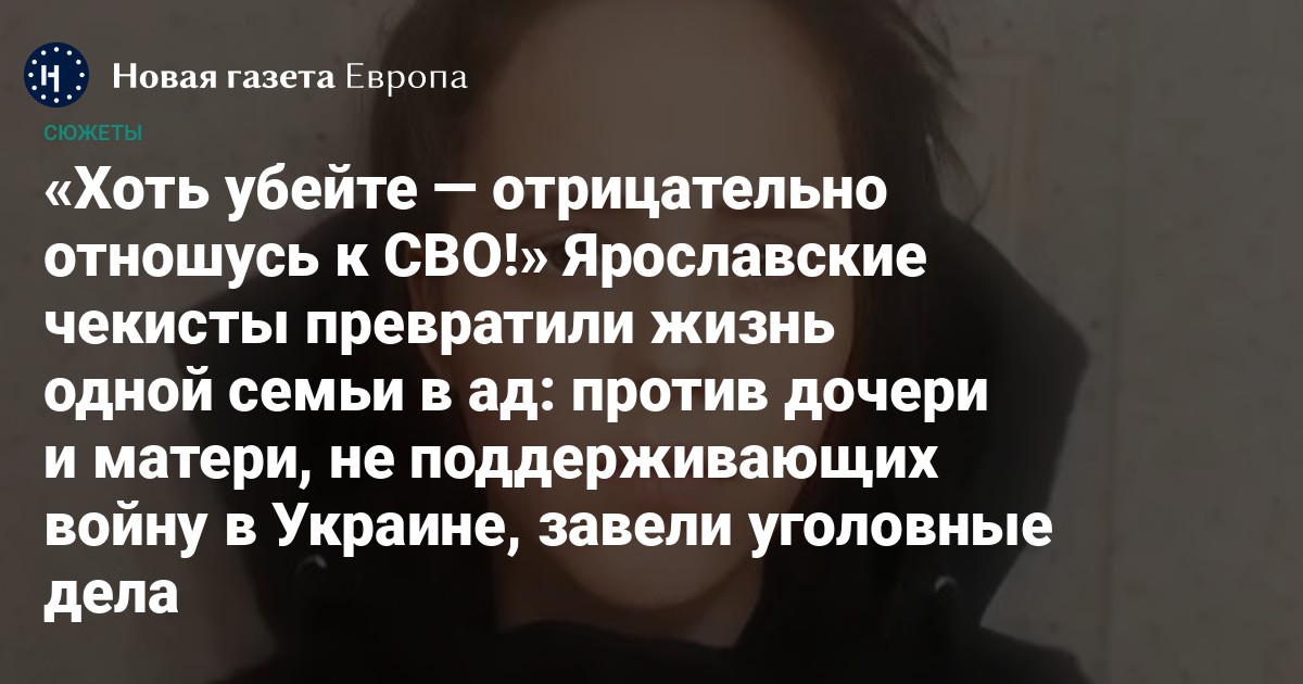В Ярославле ФСБ обвинила местную жительницу Светлану Зотову в оправдании терроризма и призывах к экстремизму за два комментария в телеграме. Ее старшая дочь Валерия с середины февраля находится в СИЗО по обвинению в покушении на теракт. По версии ФСБ, она якобы пыталась поджечь пункт сбора помощи для мобилизованных. Зотова уверена, что уголовное дело против дочери — это провокация ФСБ. В прошлом году Валерия познакомилась с неким «Андреем из ВСУ», который настойчиво предлагал ей совершить поджог или устроить диверсию на железной дороге.