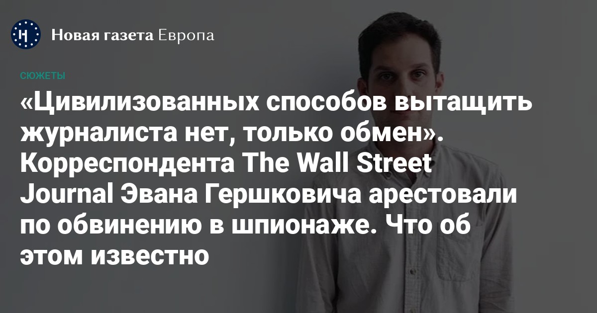 Журналиста американского издания The Wall Street Journal Эвана Гершковича 29 марта задержали в Екатеринбурге по подозрению в шпионаже. В четверг, 30 марта, его доставили в Москву, где Лефортовский суд арестовал Гершковича на два месяца. Он стал первым американским журналистом, задержанным в России по обвинению в шпионаже с 1986 года. Госсекретарь США Энтони Блинкен призвал американских граждан, проживающих или путешествующих в России, немедленно покинуть страну после ареста журналиста. Корреспондентка «Новой газеты Европа» собрала все, что известно о задержании и о журналисткой деятельности Гершковича.