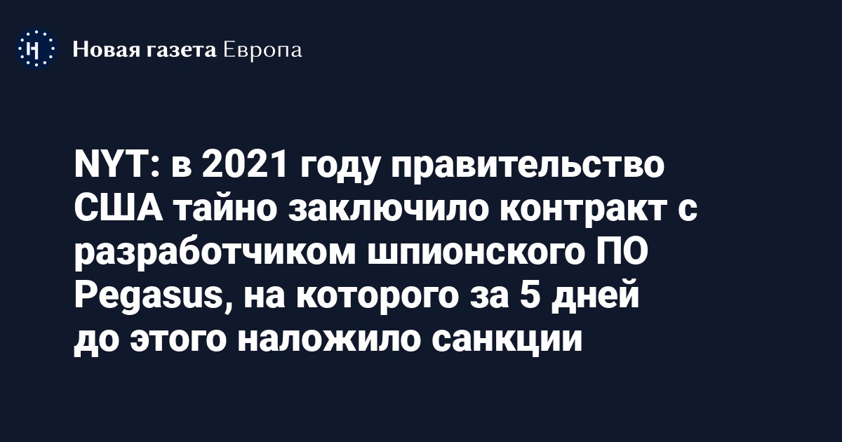 NYT: в 2021 году правительство США тайно заключило контракт с разработчиком шпионского ПО Pegasus, на которого за 5 дней до этого наложило санкции