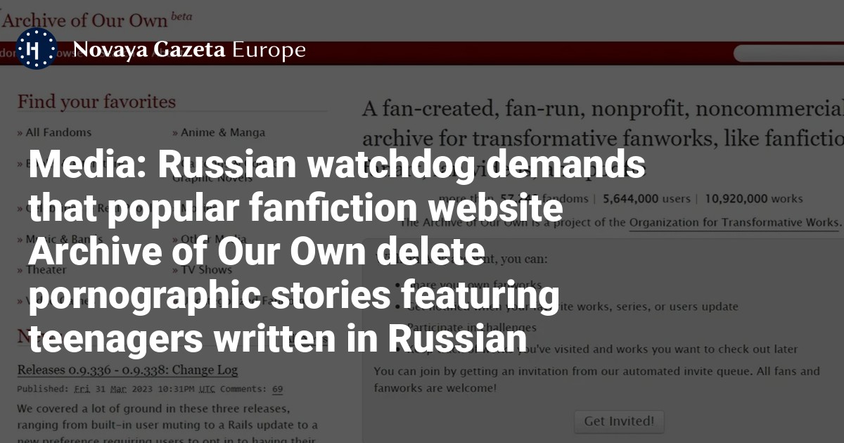 Roskomnadzor, Russia’s media watchdog, has discovered several pornographic stories written in Russian that involve teenagers on Archive of Our Own, a popular fanfiction repository, and sent a demand to the website to take them down, the watchdog told Vedomosti.