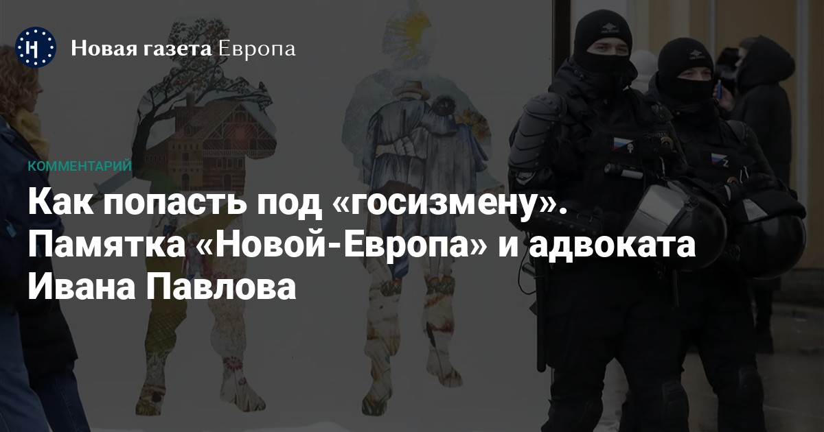«Новая газета Европа» решила написать памятку — что нужно сказать или сделать, чтобы тебя обвинили в госизмене. Помог нам в ее составлении адвокат Иван Павлов. Он вместе с коллегами сначала в рамках «Команды 29», а сейчас в рамках проекта «Первый отдел», занимается защитой фигурантов дел о госизмене и шпионаже. Властями России сам Павлов, многие его коллеги и «Команда 29» признаны иностранными агентами.