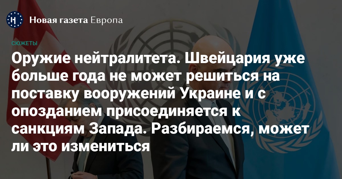 Более двух столетий официально (а на практике все пять) Швейцария сохраняет нейтралитет в военных конфликтах. Однако уже больше года, с начала войны в Украине, позиция Швейцарии подвергается испытанию — как извне, так и изнутри. Придерживаясь нейтралитета, страна, по сути, блокирует часть поставок оружия Киеву другими европейскими странами и сама ничего не поставляет, а также с запозданием присоединяется к экономическим санкциям, давая возможность успеть вывести российские активы из страны и тем самым избежать их заморозки.