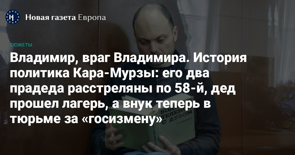 «Новая газета Европа» представляет жизненный путь потомственного историка, журналиста и общественного деятеля Владимира Кара-Мурзы-младшего. На прошлой неделе обвинение запросило для него 25 лет колонии строгого режима. Приговор вынесет судья, который стал фигурантом «списка Магнитского» благодаря… Кара-Мурзе.