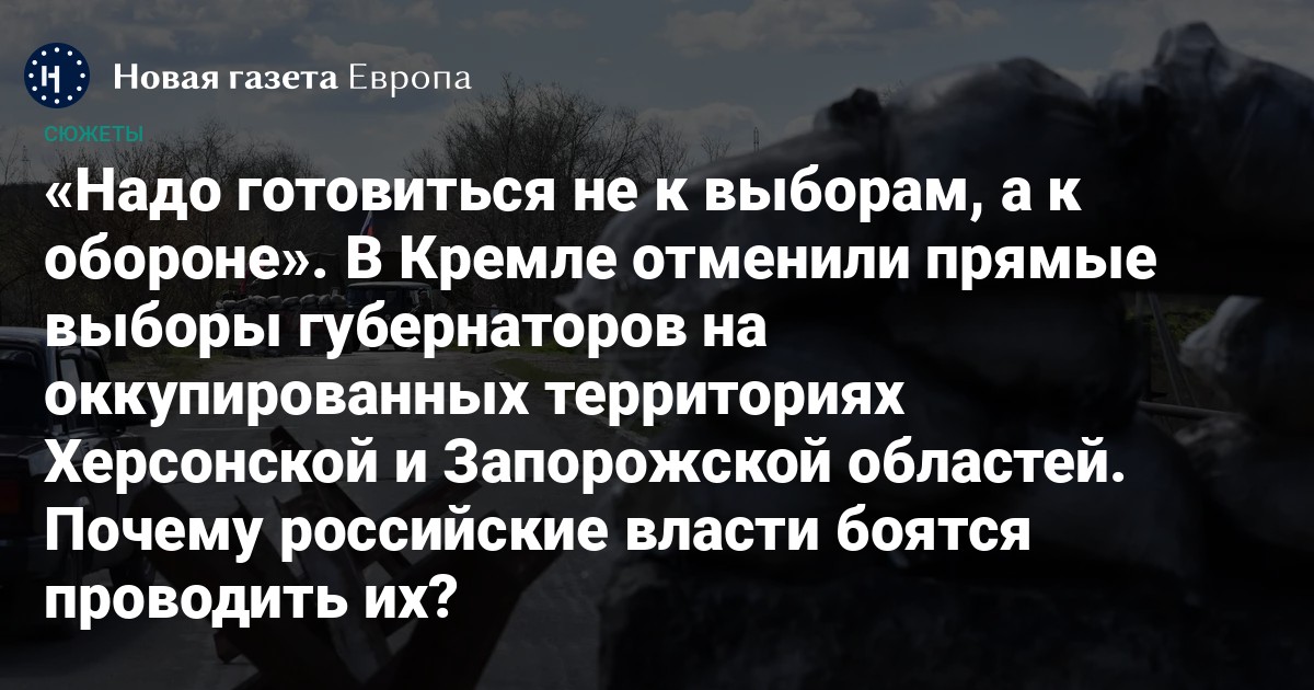 — Никогда не удастся организовать прямых выборов губернаторов, — отметил наш собеседник. — Вообще не бывает выборов на территории, где ведутся боевые действия. Когда бомбы падают на головы, выборы не проводят. И вообще, выборы кого? Выборы губернатора Херсонской области без Херсонской области? Кого мы выбираем? Губернатора Геническа и Мелитополя? В Донецке и Луганске чисто технически еще возможно что-то провести, но тут нет. Выборы депутатов просто «нарисуют».