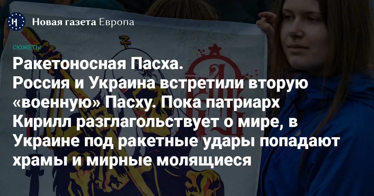О мире говорится и в пасхальном послании находящегося под санкциями ряда стран Московского патриарха Кирилла (Гундяева). Но в очень специфическом, пропагандистском контексте. Кирилл желает мира «братским народам, вышедшим из единой Днепровской купели крещения», но не произносит слова «война» (или хотя бы «военная операция») и не свидетельствует, что война — это зло, как написано в Социальной концепции его же церкви.