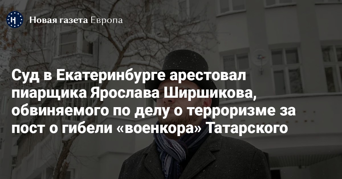 Накануне Ширшикову предъявили обвинение по статье 205.2 УК («Публичные призывы к осуществлению террористической деятельности»). Поводом стал пост в телеграм-канале «Гусарская бравада» о смерти «военкора» Владлена Татарского. Максимальное наказание по этой статье — до семи лет лишения свободы.