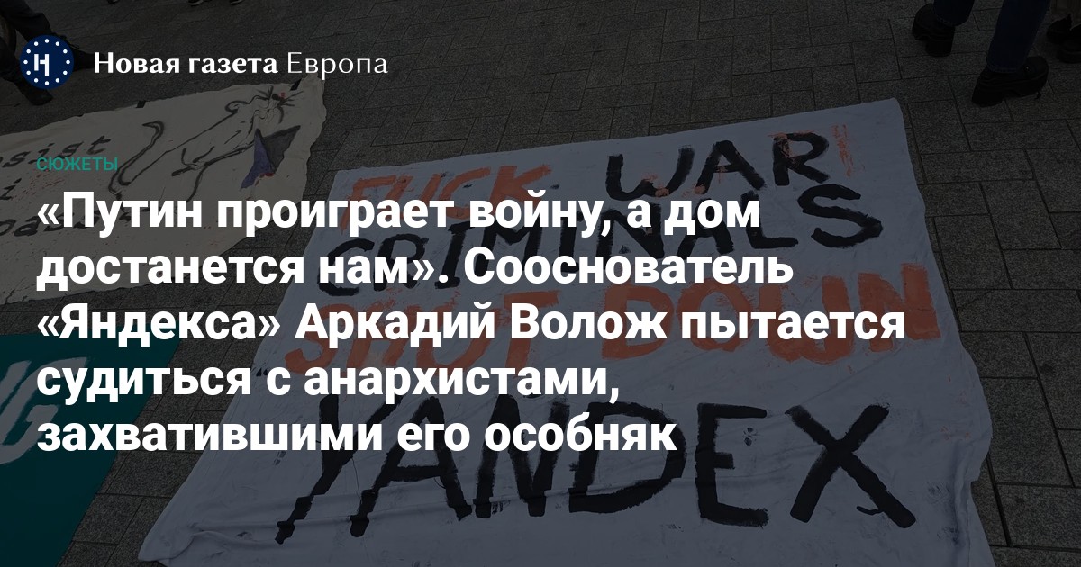 В особняке Аркадия Воложа уже больше полугода живут анархисты. Сооснователь «Яндекса» пытается судиться с ними, но если процесс выиграют сквоттеры, это придаст новый импульс захвату имущества российских олигархов в Европе