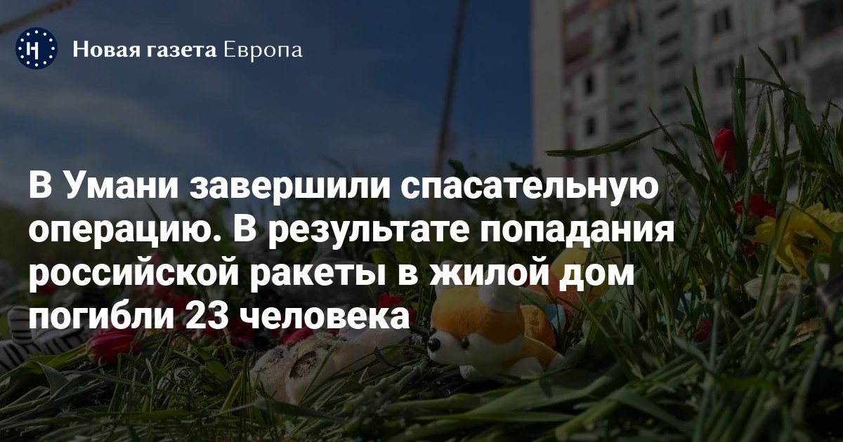 Вчера ночью российские войска обстреляли город Умань в Черкасской области Украины. Ракета попала в жилой дом. В регионе объявили трехдневный траур.