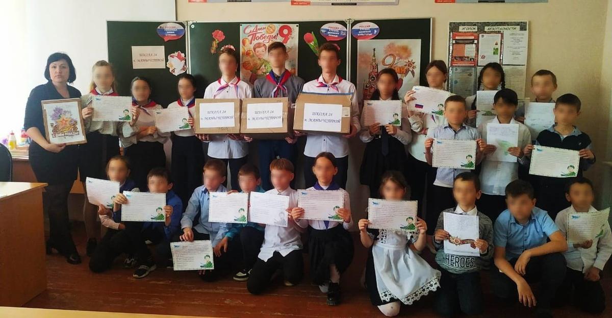 Еще одна распространенная акция к 9 мая — «Письмо солдату». В некоторых школах ее еще называют «Письма на фронт», но суть та же. На занятиях детей просят написать письма и подготовить рисунки, которые потом отправляют воюющим в Украине российским солдатам.