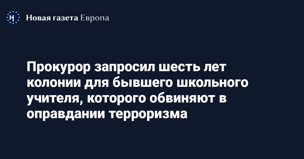 Прокурор запросил шесть лет колонии для бывшего школьного учителя 28-летнего Никиты Тушканова из Сыктывкара, обвиняемого в оправдании терроризма (ч. 2 ст. 205.2 УК) и повторной «дискредитации» армии РФ (ч. 1 ст. 20.3.3 КоАП), сообщается в телеграм-канале его поддержки.
