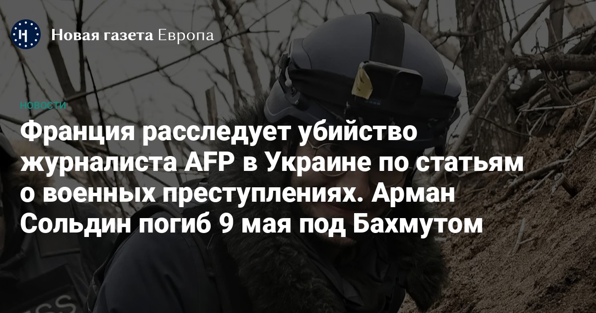 Расследование по факту гибели на востоке Украины французского журналиста Армана Сольдина начато во Франции. Оно ведется по подозрению в совершении трех военных преступлений, сообщили агентству во французской Национальной антитеррористической прокуратуре (PNAT). По данным источников AFP, группа французских следователей готовится выехать на место гибели Сольдина, в окрестности города Часов Яр Бахмутского района Донецкой области.