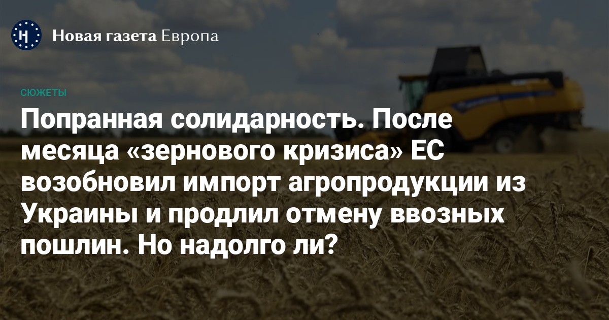 Для того чтобы хоть как-то удержать на плаву украинский аграрный экспорт, в дополнение к «зерновой сделке» Киева и Москвы ЕС решился на довольно радикальный шаг: отменил все ввозные пошлины на сельскохозяйственную продукцию, поставляемую Украиной. Внутри Европы были построены специальные логистические цепочки, которые позволили украинскому зерну попасть на конечные рынки сбыта, — эта мера получила название «линии солидарности» (solidarity lanes).