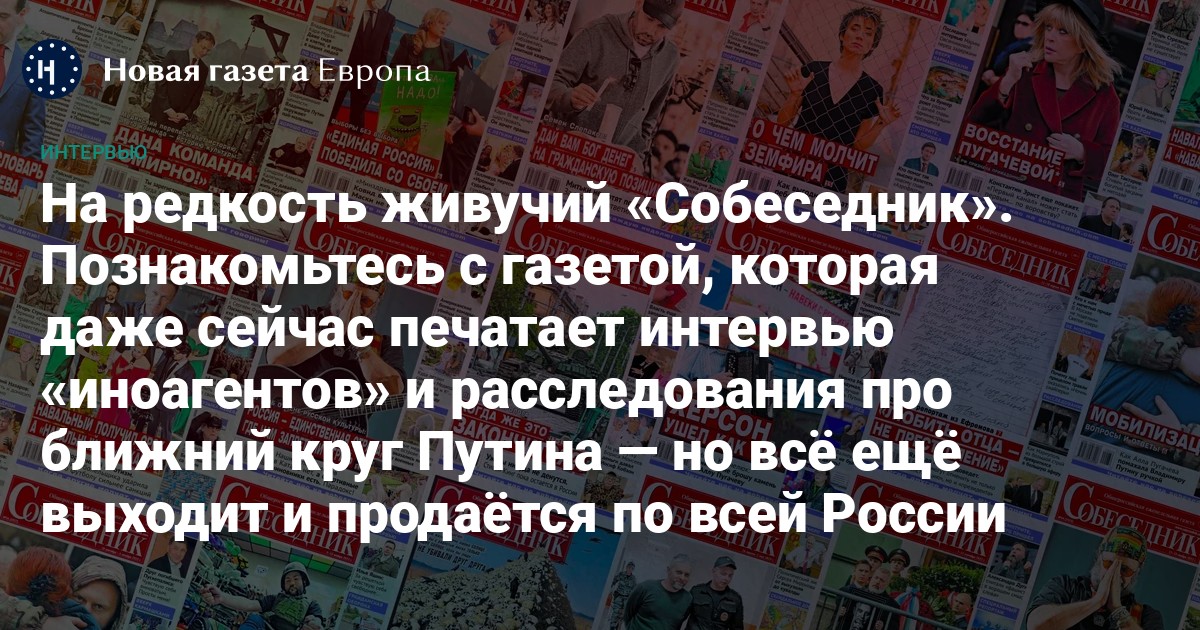 В условиях тотальной зачистки независимой журналистики в России остаётся как минимум одно издание, которое продолжает выходить в печатном виде с максимально острыми материалами — от расследований о деятельности госолигархов до бесед с максимально нерукопожатными для нынешней власти людьми. На страницах еженедельника «Собеседник», основанного еще в 1984 году, появляются интервью с Виктором Шендеровичем, Владимиром Кара-Мурзой, Андреем Макаревичем и другими персонами, которые в России признаны «иноагентами» (и едва ли не врагами народа). Кроме того, почти в каждом номере есть материалы о российских судах (в том числе — над Алексеем Навальным), а еще весьма острые статьи и даже расследования о близких к президенту людях — включая, например, Сергея Шойгу. Не говоря уж об обложках издания, которое может позволить себе демонстративно опубликовать фото с тем же Навальным в качестве центрального анонса.