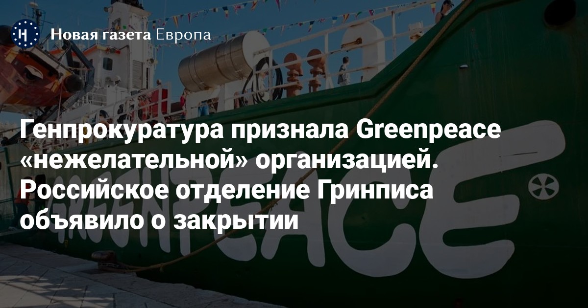 «Мы выражаем категорическое несогласие с решением Генпрокуратуры. Это решение делает незаконной продолжение любой деятельности Гринпис в России. Поэтому российское отделение Гринпис вынуждено закрыться», — говорится в пресс-релизе Гринписа.